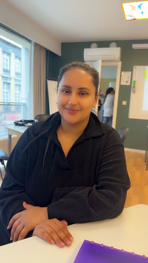 Je suis étudiante. J'aime le chocolat. Je parle anglais et espagnol. J'habite à Seraing.